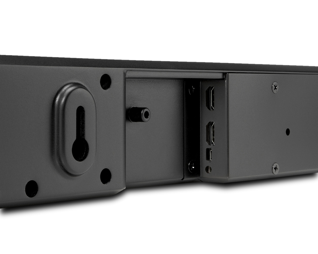 If you prefer wall mounting, the soundbar features built-in keyholes that let you easily mount the soundbar directly to the wall.